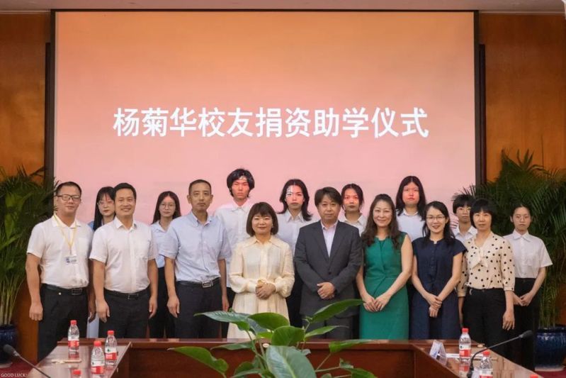 2022年6月8日下午,在國際會議廳舉行了第五期楊菊華捐資助學儀式,楊菊華回校捐贈助學金3萬元。據了解,在這之前,她已經資助了16位學生。