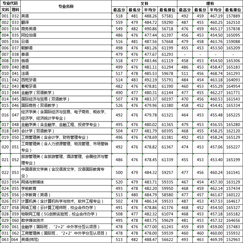 往年分數僅供參考,2021年招生計劃及報考指南歡迎關注“廣外南國招生就業指導處”微信公衆号