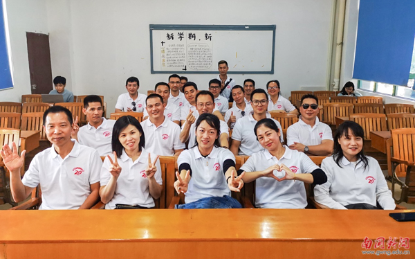 得知今年是學校25周年生日,該班邀請了在廣東省内的22名同學作為全國各地校友的代表,前來學校祝賀校慶,給母校帶來真誠的祝福。校友們身着統一的班服,回到曾經上過課的教室,追憶當年在南國的曆曆往事,暢談畢業後的工作經曆及家庭生活情況,表達了對母校教育和培養的感恩之情。校友們興緻勃勃地參觀校園,在圖書館、教學樓、行政樓、宿舍、食堂等一一駐足,合影留念。看到學校亭美水秀、湖光山色,同學們由衷感慨母校二十來的巨大變化,對母校的蓬勃發展倍感自豪。