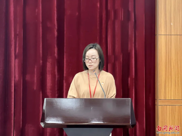 郭婷在講話中總結道,王院長的思政課以習近平總書記在黨的十九屆六中全會重要講話和全會《決議》為依據,帶領師生們學習領會全會精神,深刻認識黨的百年奮鬥初心使命,更以百年來革命烈士詩歌典範為佐證,以文學的角度分析講解,使課程不僅僅是一堂思想政治教育課,更是一堂美的詩文閱讀分享課,還是一堂生活的紅色文化傳承課。(記者/肖小紅 攝影/盧曉晴 )