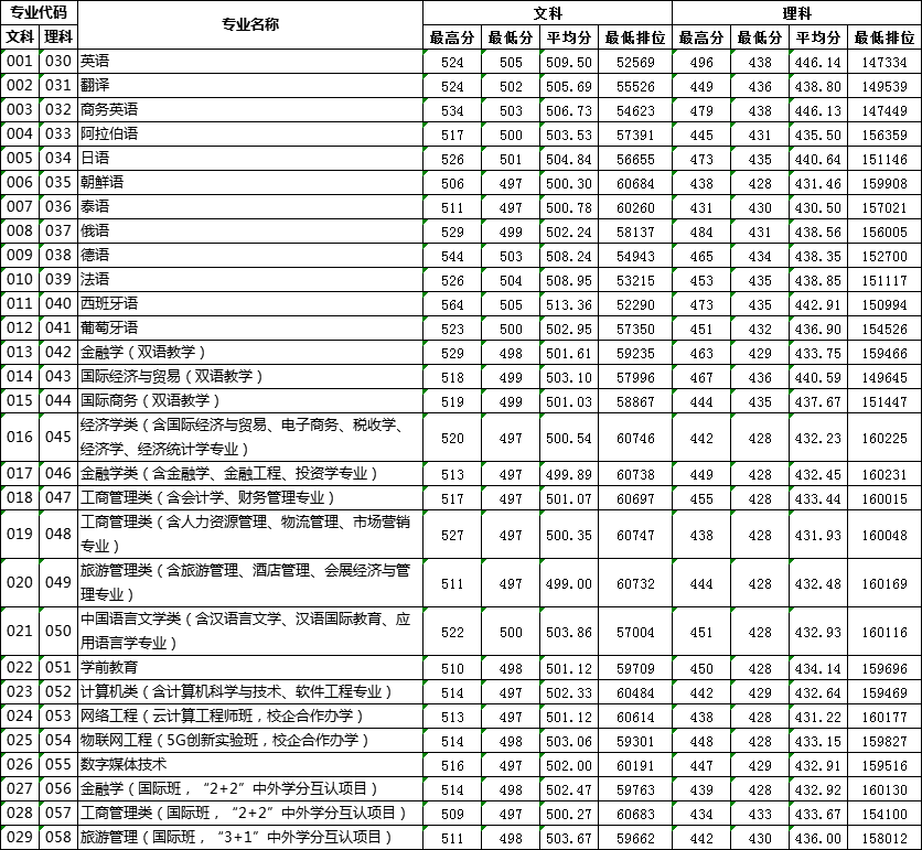 往年分數僅供參考,2020年招生計劃及報考指南歡迎關注“廣外南國招生就業指導處”微信公衆号