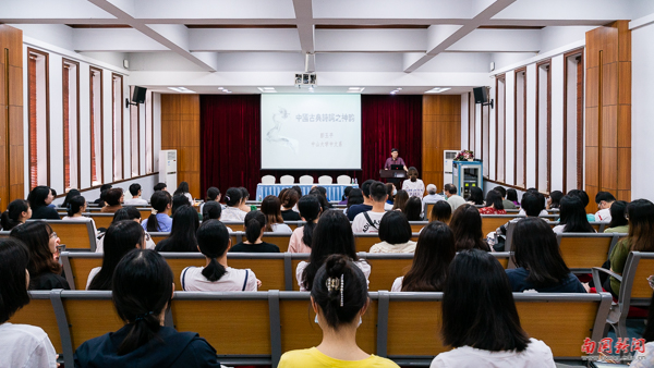 彭玉平教授為我校師生講授唐宋詩詞的魅力(謝豐 攝)