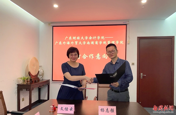 本網訊 6月13日,我校管理學院學科負責人蘇武俊教授帶領管理學院領導班子成員,赴廣東财經大學會計學院簽署全面合作意向書,受到了廣财會計學院黨委書記邢風雲、黨委副書記陳發榮、副院長楊志強的熱情接待。
