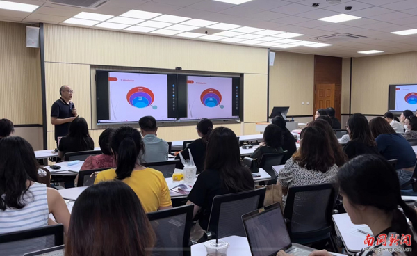 溫賓利從自己近年的課堂教學經曆入手,結合學生英語學習和畢業論文寫作的實際,舉例分析了影響學生掌握紮實英語基本功的因素。他分享了英國教育家David Didau提出的“英語是一門基于知識之課程”的觀點和“知識掌握——操練應用——技能形成”的語言技能養成路徑,指出:要幫助學生打好英語基本功,教師必須首先傳授足夠的英語知識,然後設計各種語言應用活動進行操練,才能達到把語言知識變為語言技能的目的。他引導教師們應着力強化學生的語法意識,并從語言運用的基本單位“句子”入手,查漏補缺,建立健全有關語言知識。