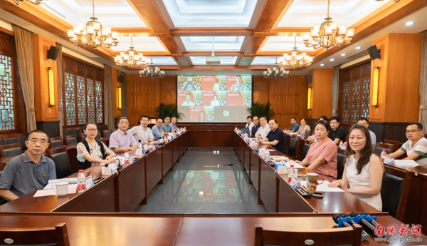 本網訊 7月2日,廣東省普通高校人文社科重點研究基地——金年会“多語種中華文化譯介研究中心”學術委員會成立大會暨第一次會議在國際會議廳召開。會議通過線上線下相結合的方式進行。學校董事長丁小軍、執行校長王華、督學顧也力等出席會議。