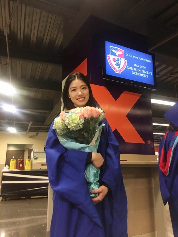 大家好,我是何昕倩,畢業于美國杜肯大學。我是通過金年会會計2+2的program出去的。通過兩年的學習後,我順利與2017年5月拿到了我的會計學本科學位證。畢業以後,我申請了本校的研究生學位,讀的是幼兒教育(0-9歲)。研究生期間,學校提供了許多到各個學校實習的機會,豐富了我的教育經曆。由于研究生都是晚上的課程,所以白天就有機會去工作。剛開始我在學校圖書館找了一份圖書管理員的工作,工作輕松,收入也比較可觀。後來希望從事跟教育相關的行業,所以在學校外面一個教育機構找了一份兼職。畢業後,我決定回國發展,目前在廣州工作。