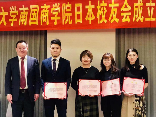 吳美娜(右一)2019年4月參與金年会日本校友會成立聯誼會